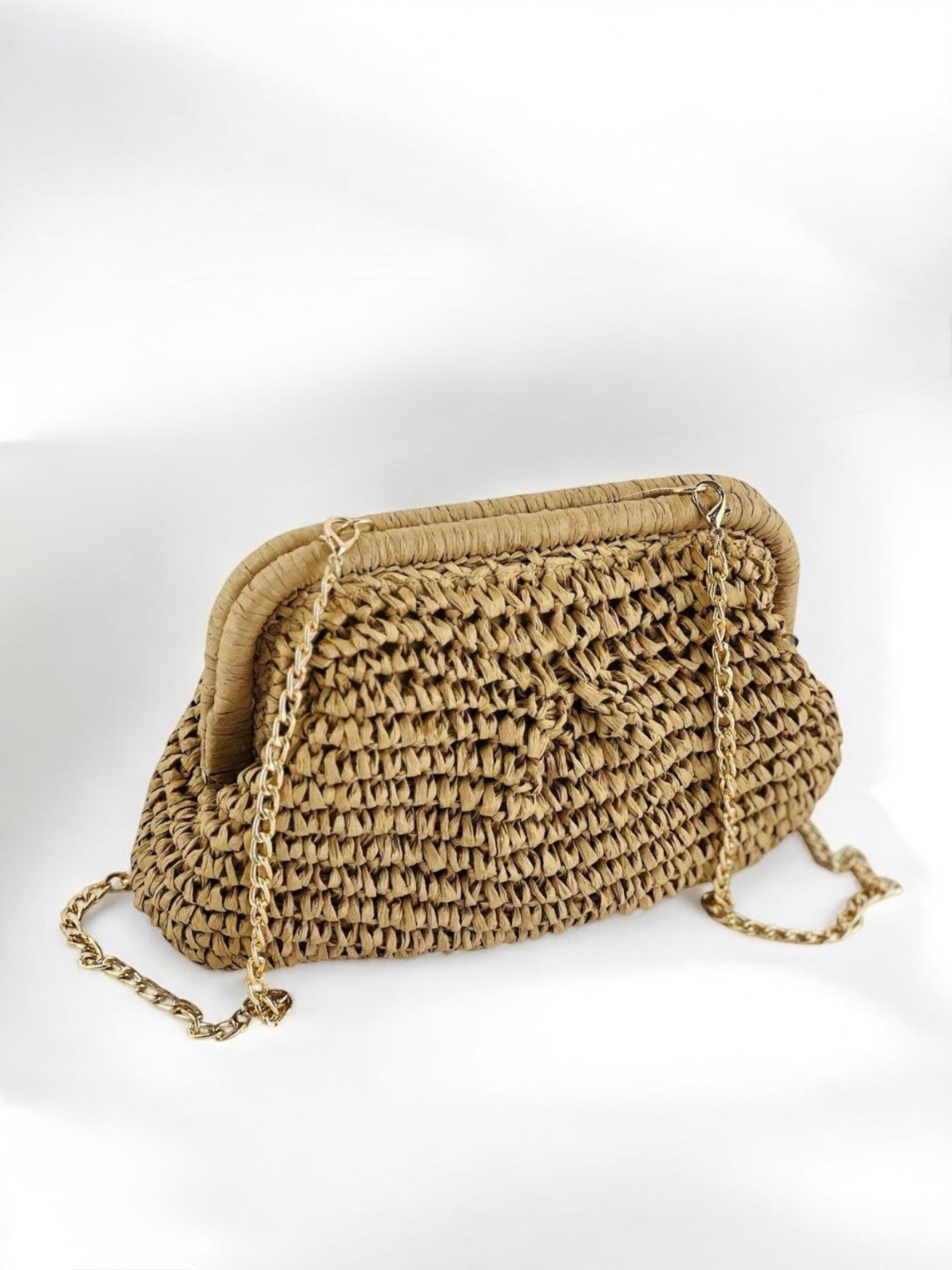 Bolso de rafia color tostado. Se puede usar de bolso de mano.
