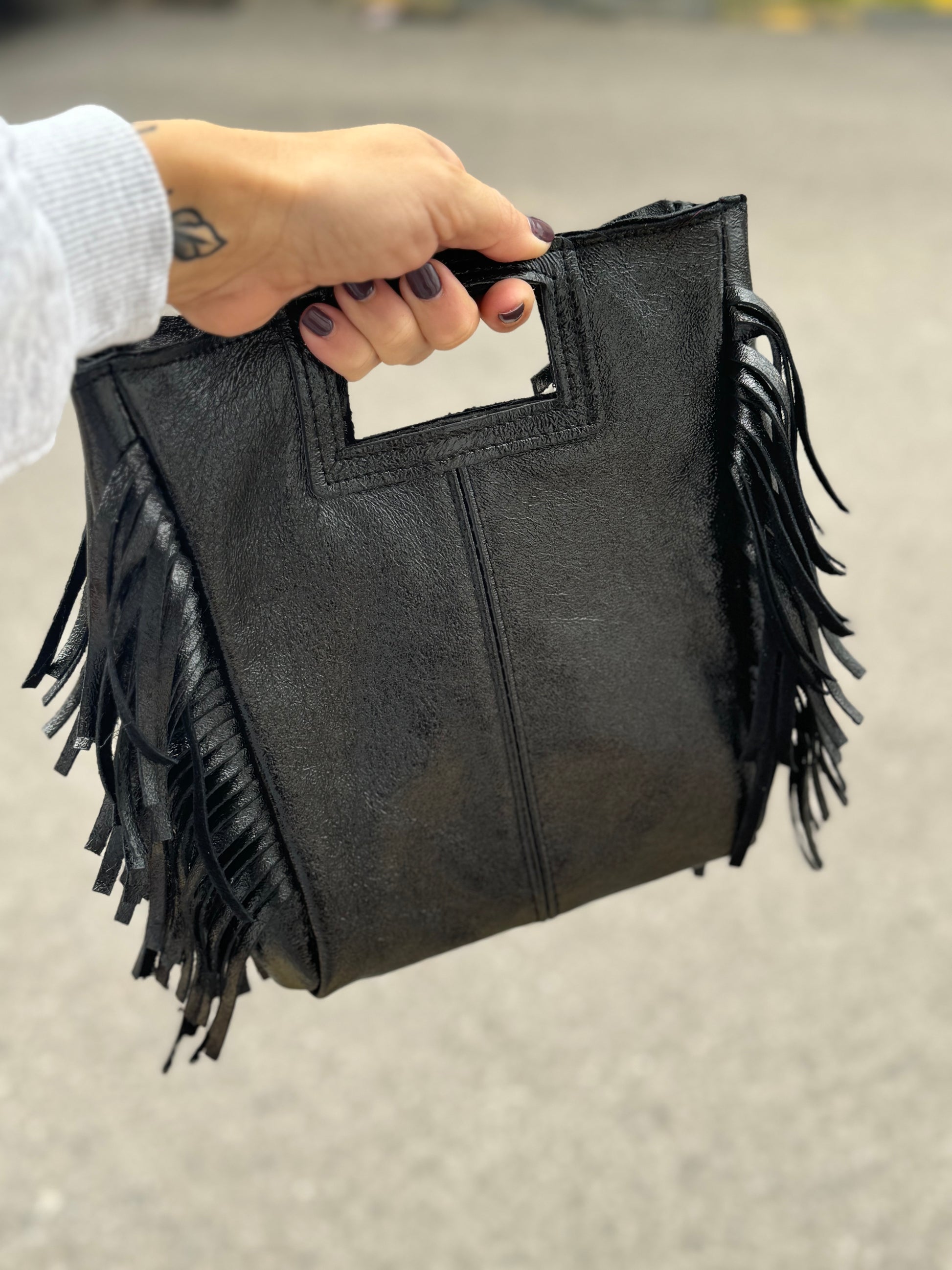 Este bolso es el ideal para una ocasión especial. Es de piel y tiene un tono brillante.