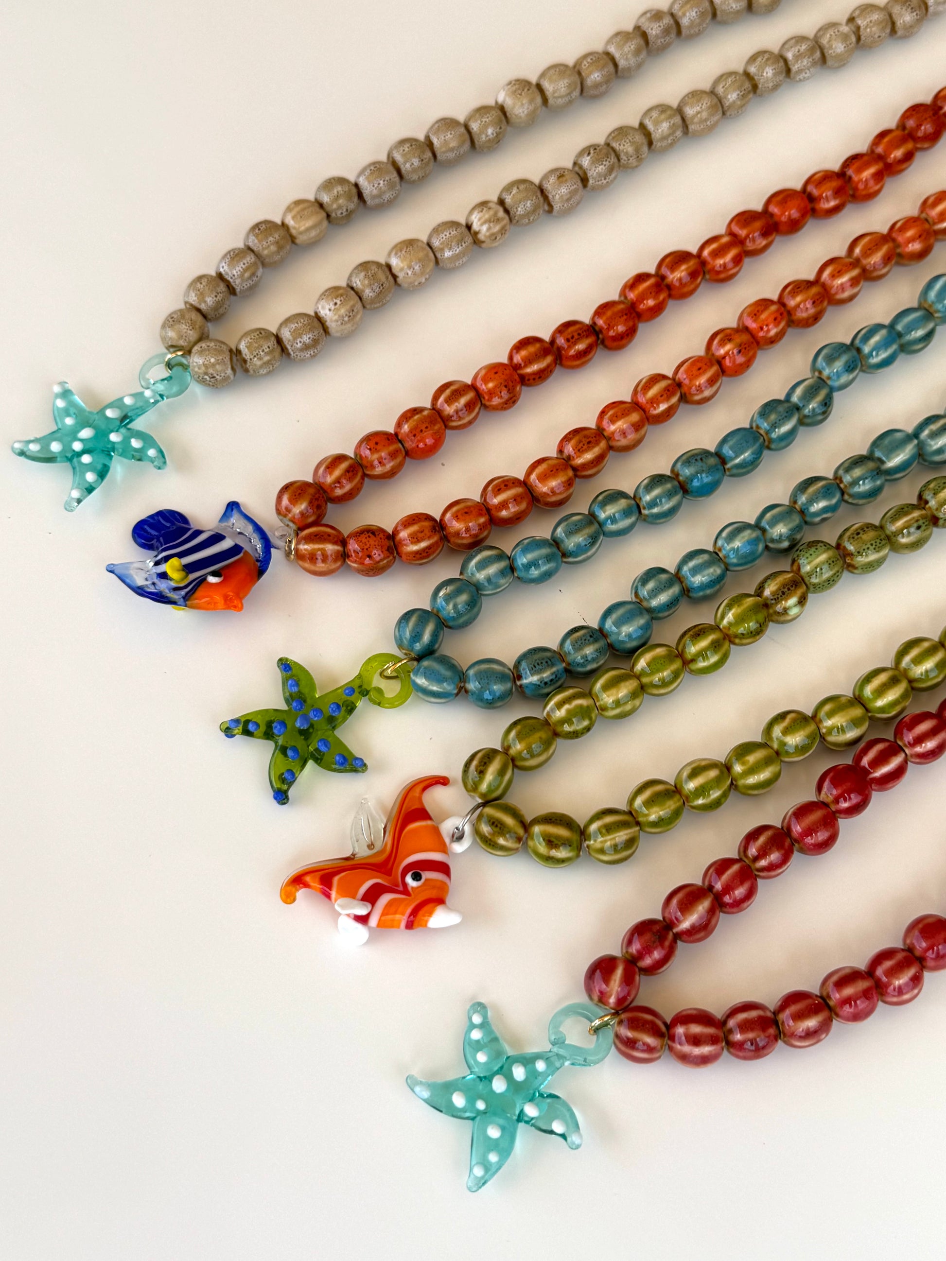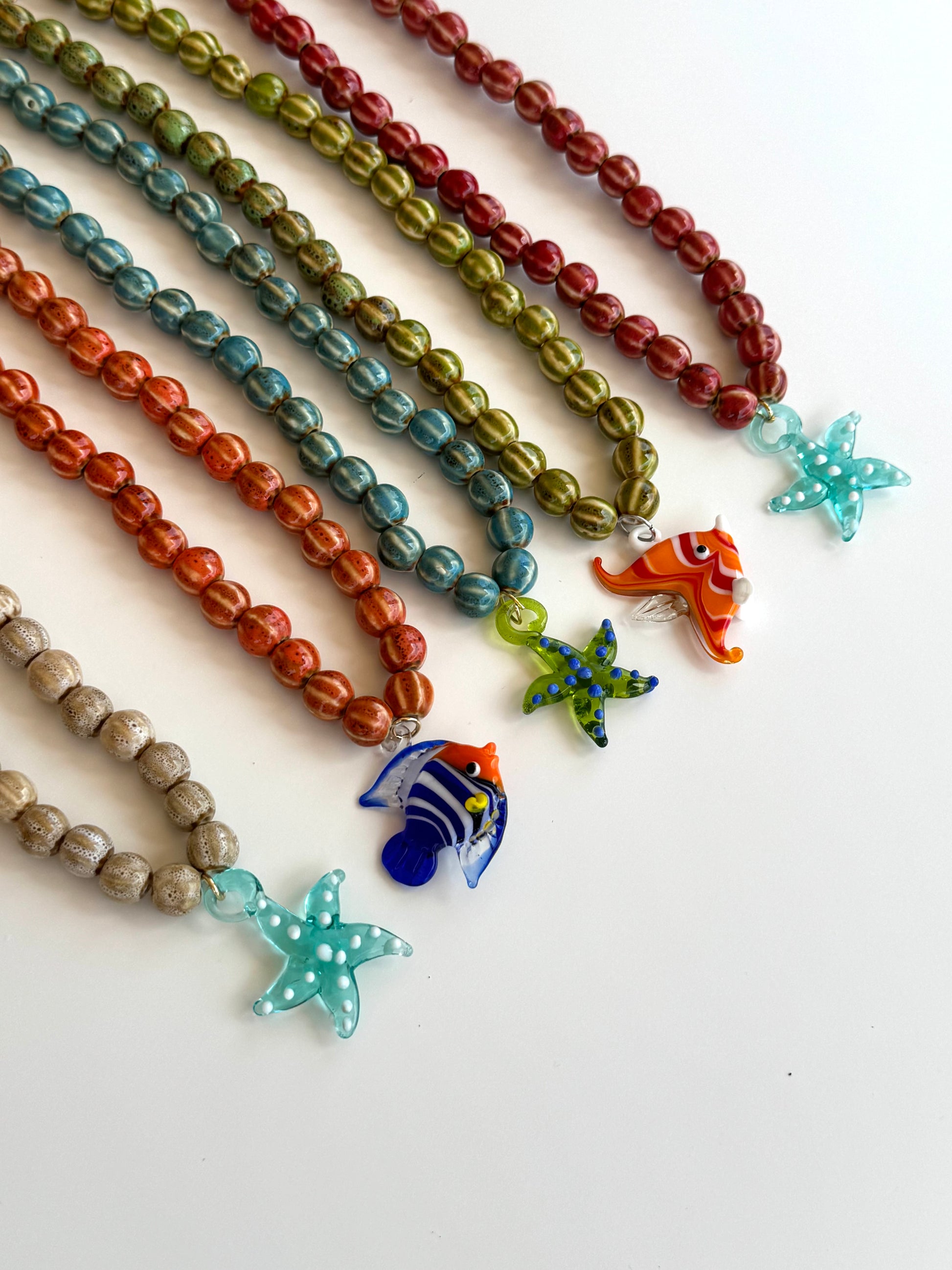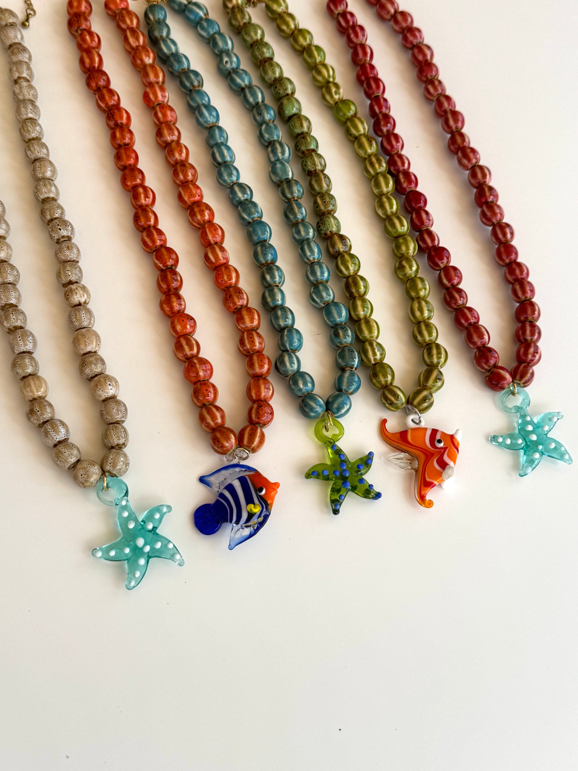 Collar compuesto por piedras de cerámica y abalorio de vidrio templado.