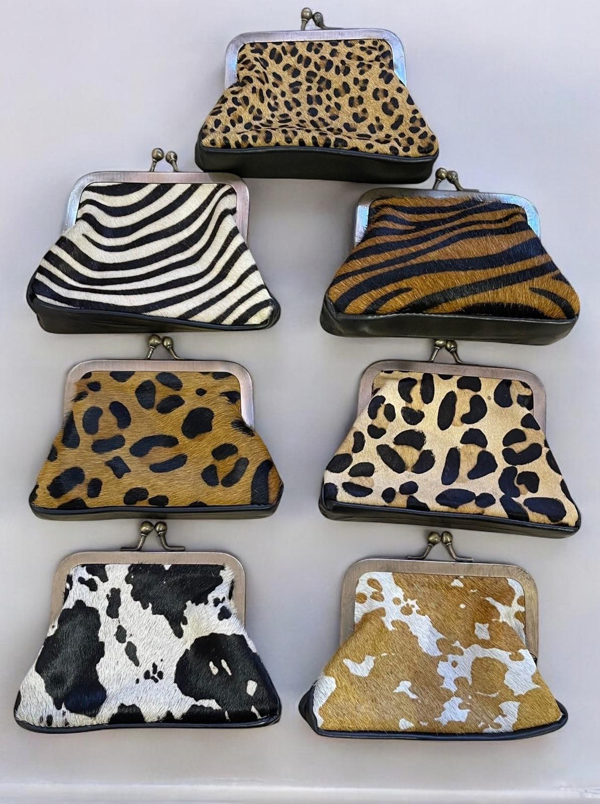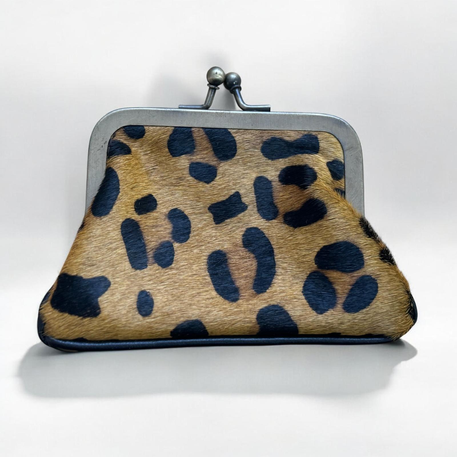 Monedero de piel y pelo con cierre de clic.